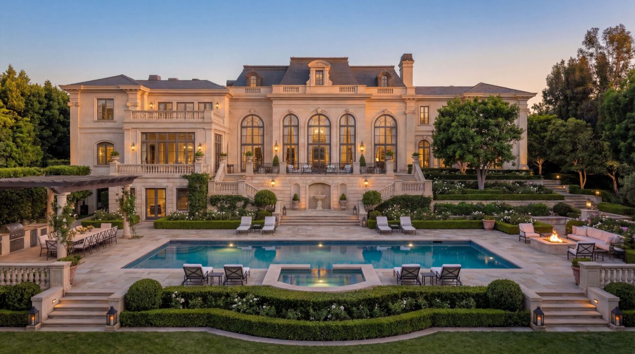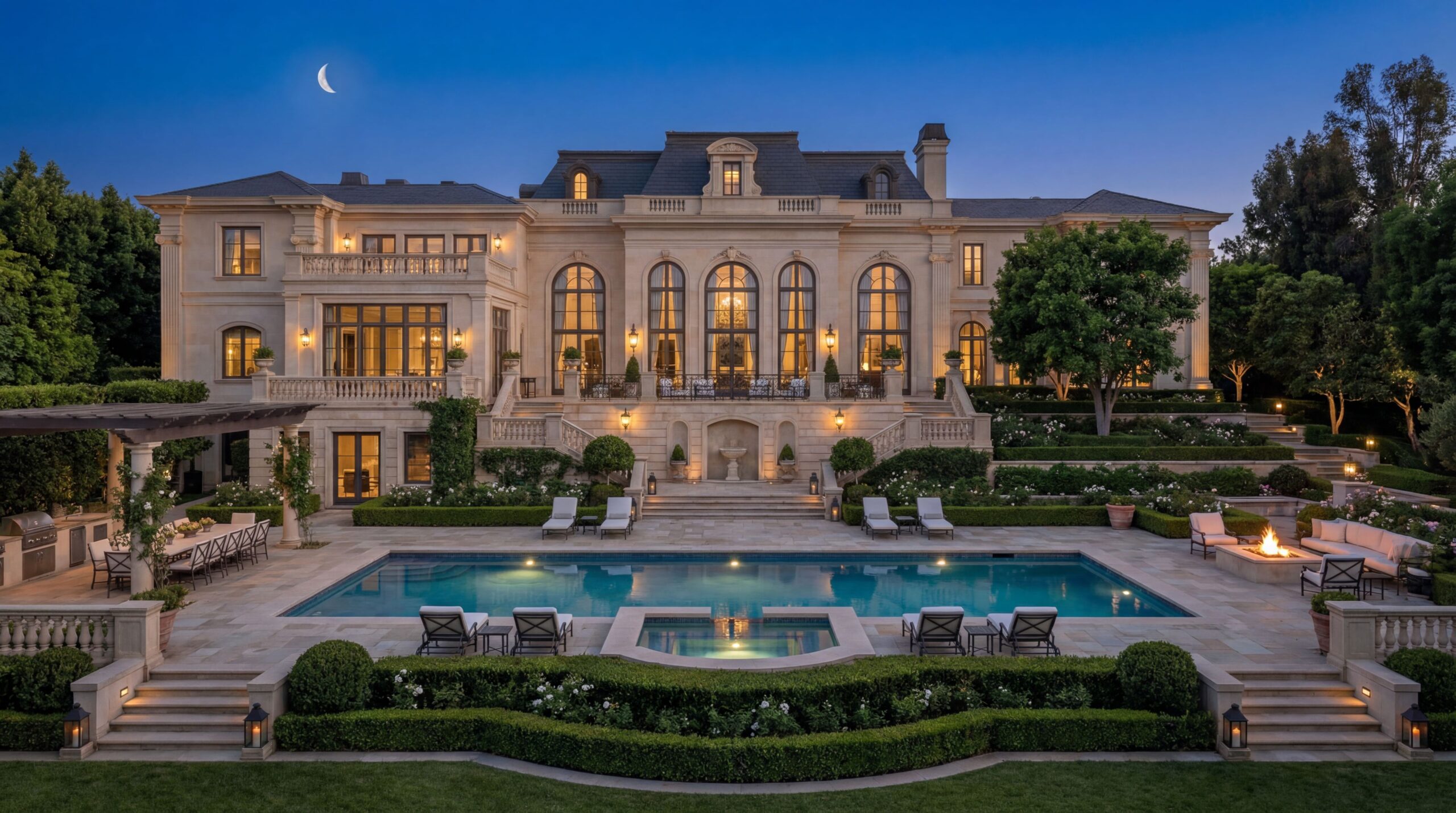 Данный архитектурный проект разработан как крупная загородная резиденция представительского уровня, ориентированная на приватное проживание и приём гостей. В основе образа лежит классическая французская архитектурная традиция, переосмысленная для современного загородного формата с развитой зоной отдыха и большим открытым бассейном.