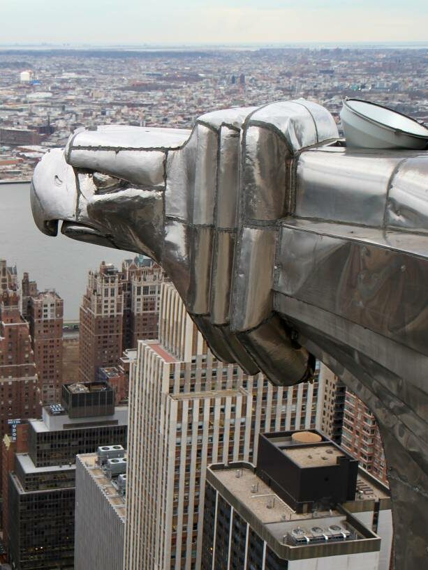 В числе самых узнаваемых – Крайслер-билдинг в Нью-Йорке (работа архитектора Уильяма ван Аллена, 1930 год). Среди особенностей: 38-метровый стальной шпиль, семисводная крыша, фасадные скульптуры в виде эмблемы автогиганта, горгульи-орлы по периметру и треугольные окна наподобие расходящихся солнечных лучей.